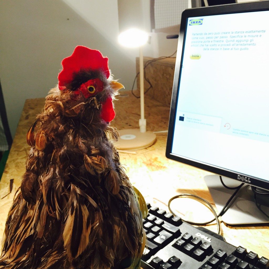 Sono la gallina che vive al negozio Ikea di via Vigevano. Siamo in due. Ma io mi chiamo Gallina. E il negozio non è un negozio. È un temporary store. Mi hanno spiegato che quando un negozio non ha dentro tanta roba ma serve a far vedere che un’azienda è molto creativa e al passo coi tempi bisogna dire che è un temporary store. Io non sono svedese, ma sono stati carini con me. Trasferirmi in città era il mio sogno, anche se adesso tutti dicono che è più bella la campagna e che per essere felici bisogna aprire un agriturismo. Sarà. A me, però, non interessa. Perché sono una gallina.