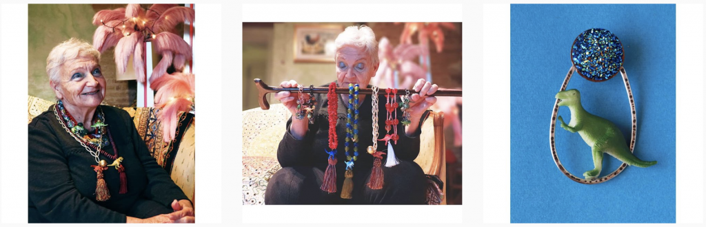 COME POSSIAMO NON AMARE DELLE OTTANTENNI COI CAPELLI FLUO CHE INDOSSANO COLLANE PIENE DI DINOSAURI DICO IO. Alice è il mio riferimento folle nell’universo dei monili. L’ultima collezione – Jurassic Girl – è un ibrido tra il mondo dei giocattoli e la bigiotteria fotonica da SCIURA di qualche decennio fa. Il risultato finale è una combo assurda di vintage giocoso e un momento di autentica gioia penzolante.