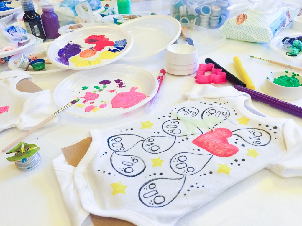 Sentendomi ormai molto padrona della situazione, ho deciso di iscrivermi con piglio e decisione al laboratorio di decorazione di bodini per neonati. Funziona così: la Chicco ti fornisce un minuscolo body di cotone purissimo e assolutamente immacolato – alto, ve lo giuro, circa sei centimetri – e tu, armata di pennarelli, colori per stoffa e formine, devi fare del tuo meglio per rovinarne irrimediabilmente la candida armonia. La cosa molto confortante, comunque, è che tuo figlio potrà venire a rinfacciartelo solo dopo aver raggiunto l’età della ragione… e che voi potrete infallibilmente contrattaccare giocandovi la carta dell’abnegazione materna: “Minicuore, io ci ho messo tutto l’impegno possibile. È il gesto che conta. È l’amore”.